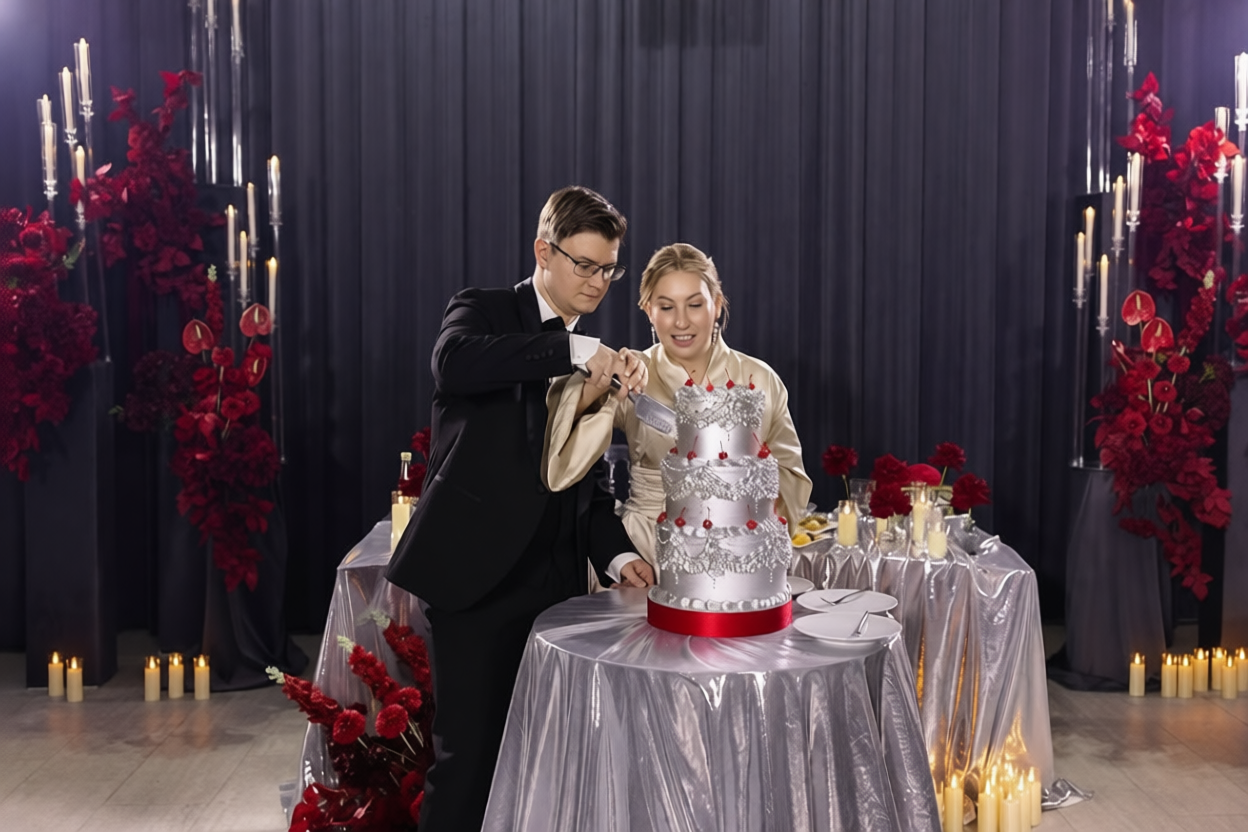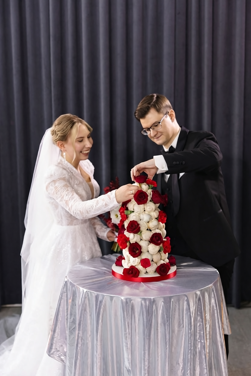 Яркая зимняя свадьба Александры и Романа в Event-hall «Пушкин» без рамок и шаблонов. Яркий декор, два образа, десерт в начале банкета, появление торта и финал праздника под специально написанные треки. Мы решили ни в чём себе не отказывать!